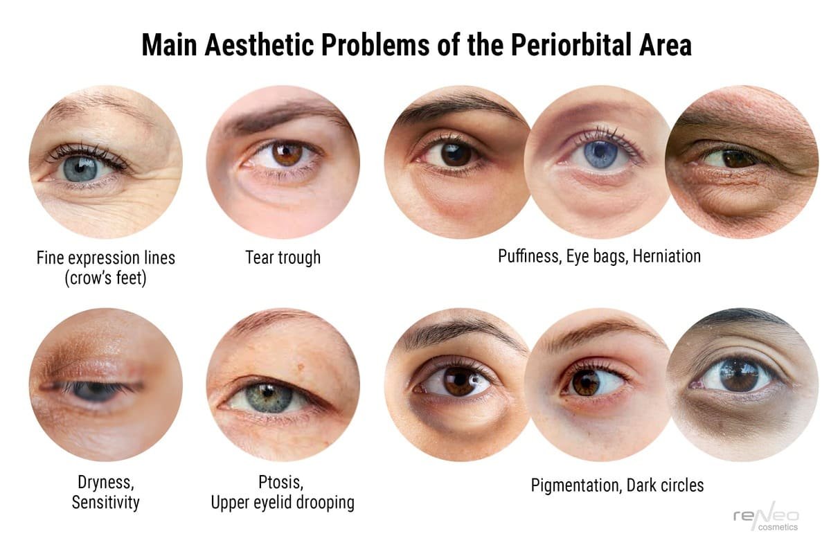 All these factors contribute to the deterioration of the firmness and elasticity of the skin around the eyes, accelerating the appearance of age-related changes and other aesthetic problems. Let’s consider in more detail the main problems of the periorbital zone and their etiology.