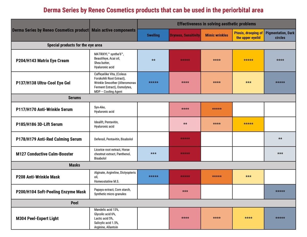 Thus, the physiological characteristics of the periorbital zone determine the need for a careful, professional, and individual approach to the selection of cosmetic procedures and care products.