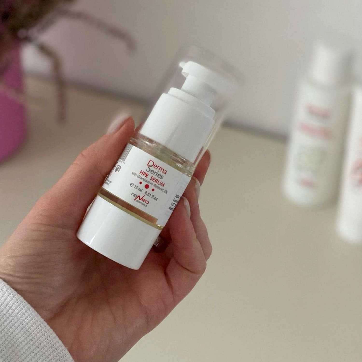 HPR SERUM with peptides and retinoid of the latest generation specifically affects the nuclear receptors of skin cells, stimulates renewal, regeneration, and synthesis of new structures of the extracellular matrix. Serum helps to even out the microrelief and skin tone, narrows pores, normalizes keratinization processes, and reduce rashes. Als restores skin elasticity and hydration, significantly improves its color, and smoothes fine wrinkles. It contains two unique components. The latest generation HPR retinoid is the most effective for skin renewal among retinol derivatives and at the same time it is absolutely safe, with a very low irritation potential. Renovage peptide complex promotes skin thickening and restoration of its turgor by stabilizing telomeres in the DNA cells. The complex of sweet almond and grape seed oils saturates the skin with antioxidants, preventing inflammatory and oxidative processes in tissues. The serum has a light oily texture and is perfectly absorbed without creating a film on the skin surface.