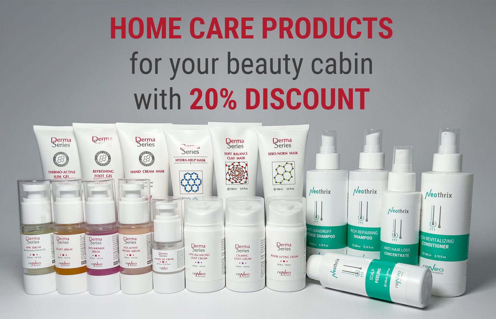 ReNeo Cosmetics offers your clients a variety of treatments at reasonable costs. Our home care product range is effective and affordable, prolonging the effect of treatments. Amazing results guarantee customer loyalty for your clinic / salon / beauty cabin.